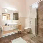 Appartement Fritz har ett badrum med hårtorkar, badlakan och handdukar. Dessutom finns det en handikappdusch och en separat toalett.